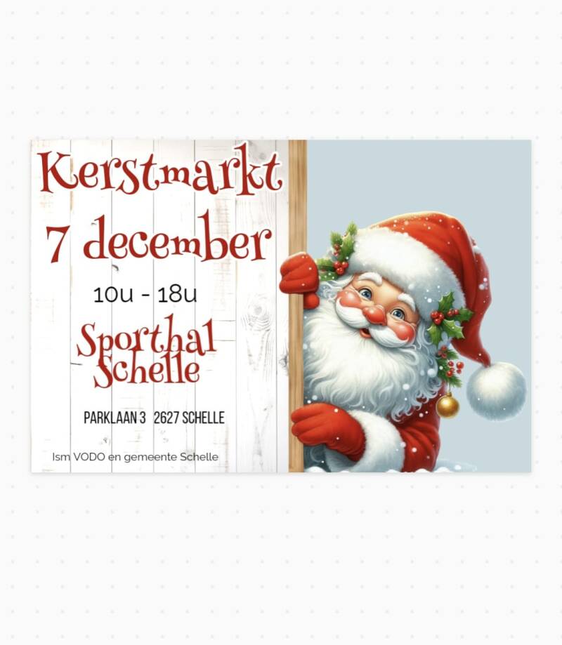 - Enkel per overschrijving naar BE91.1030.9445.9476 (VODO Schelle), met vermelding Kerstmarkt 2025 - naam waarmee is ingeschreven.